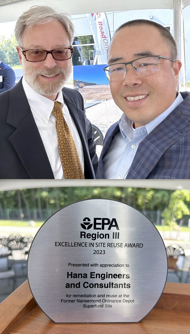 The U.S. Environmental Protection Agency (EPA) presented its Excellence in Site Reuse Award to Brookwood Capital Partners (BCP) and Hana Engineers and Consultants, LLC for their outstanding commitment and efforts in revitalizing part of the Former Nansemond Ordnance Depot Superfund site in Suffolk, Virginia.